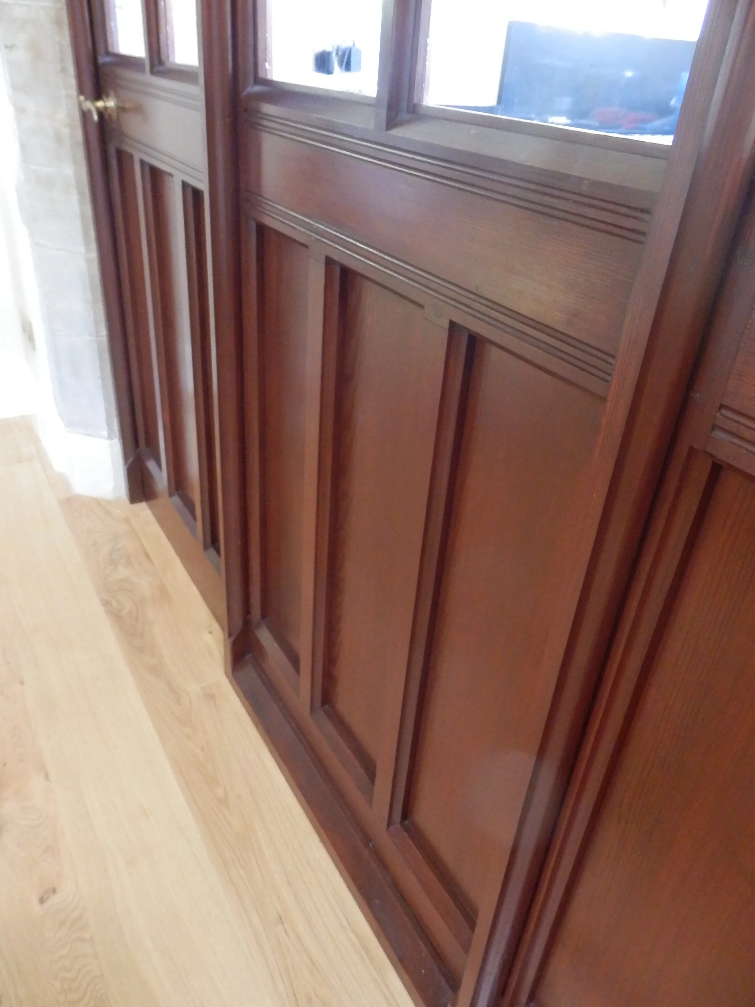 Having been removed from its site due to re-flooring work, I was asked to restore and refit this screen to its original position in a converted church. It was in a tired and faded state and was refreshed and cleaned using hand applied finishing techniques to bring it back to life.