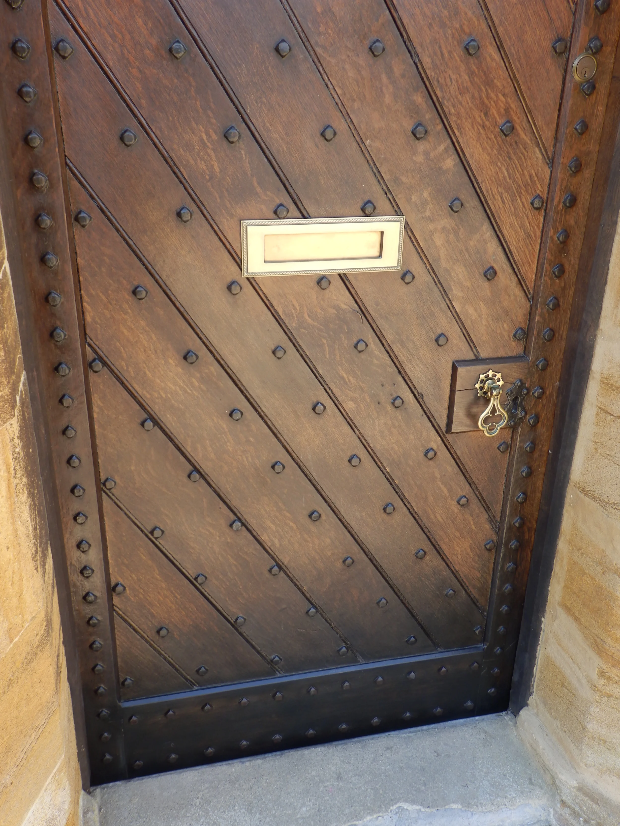 I was recently asked to make a similar scarfed oak repair to another exterior door at the property. The owner wanted an 'honest' look and so the wood has been left natural and will age and weather down in time. Close fitting replacement timber and epoxy resin will ensure a durable weathertight finish.