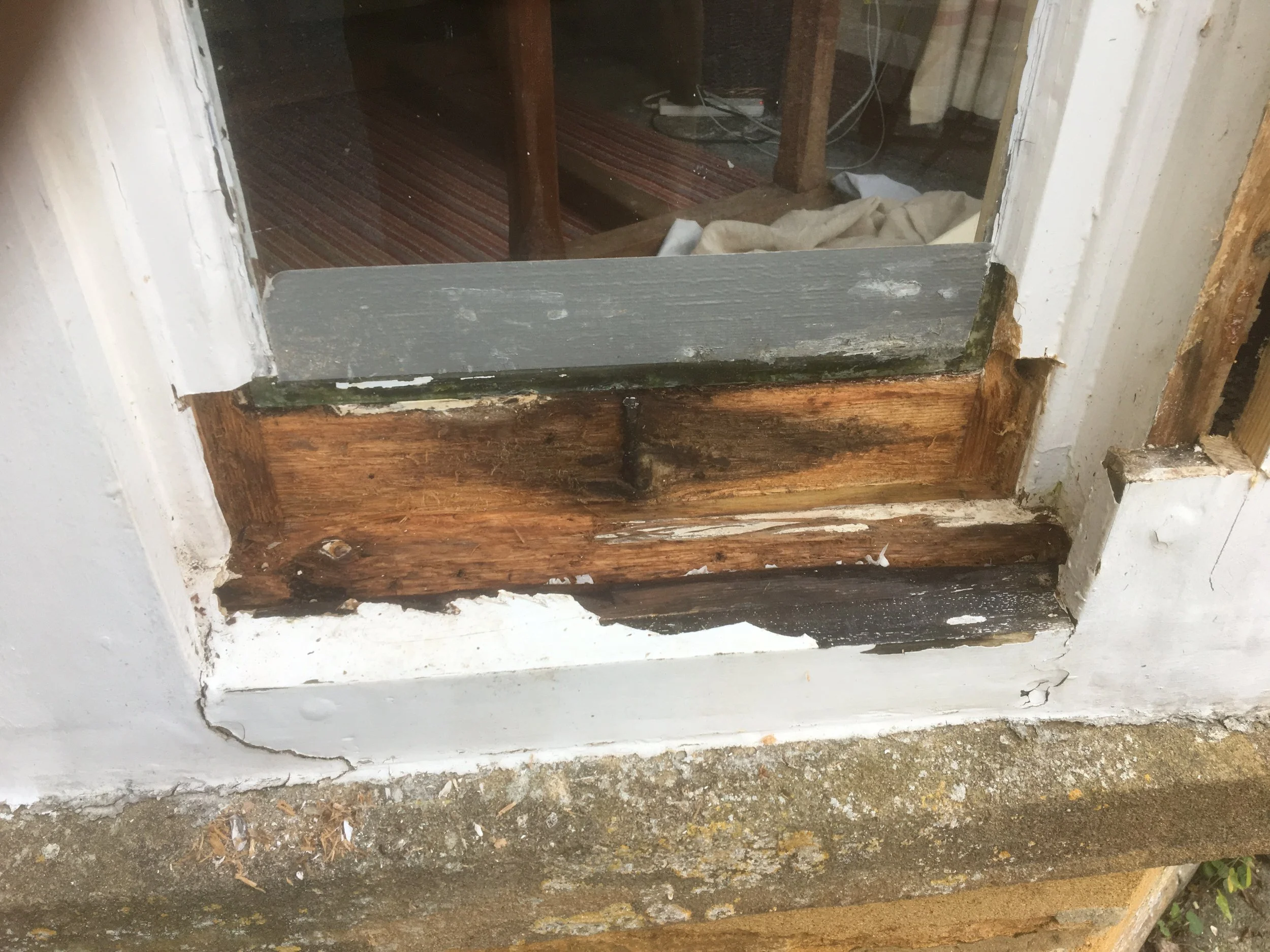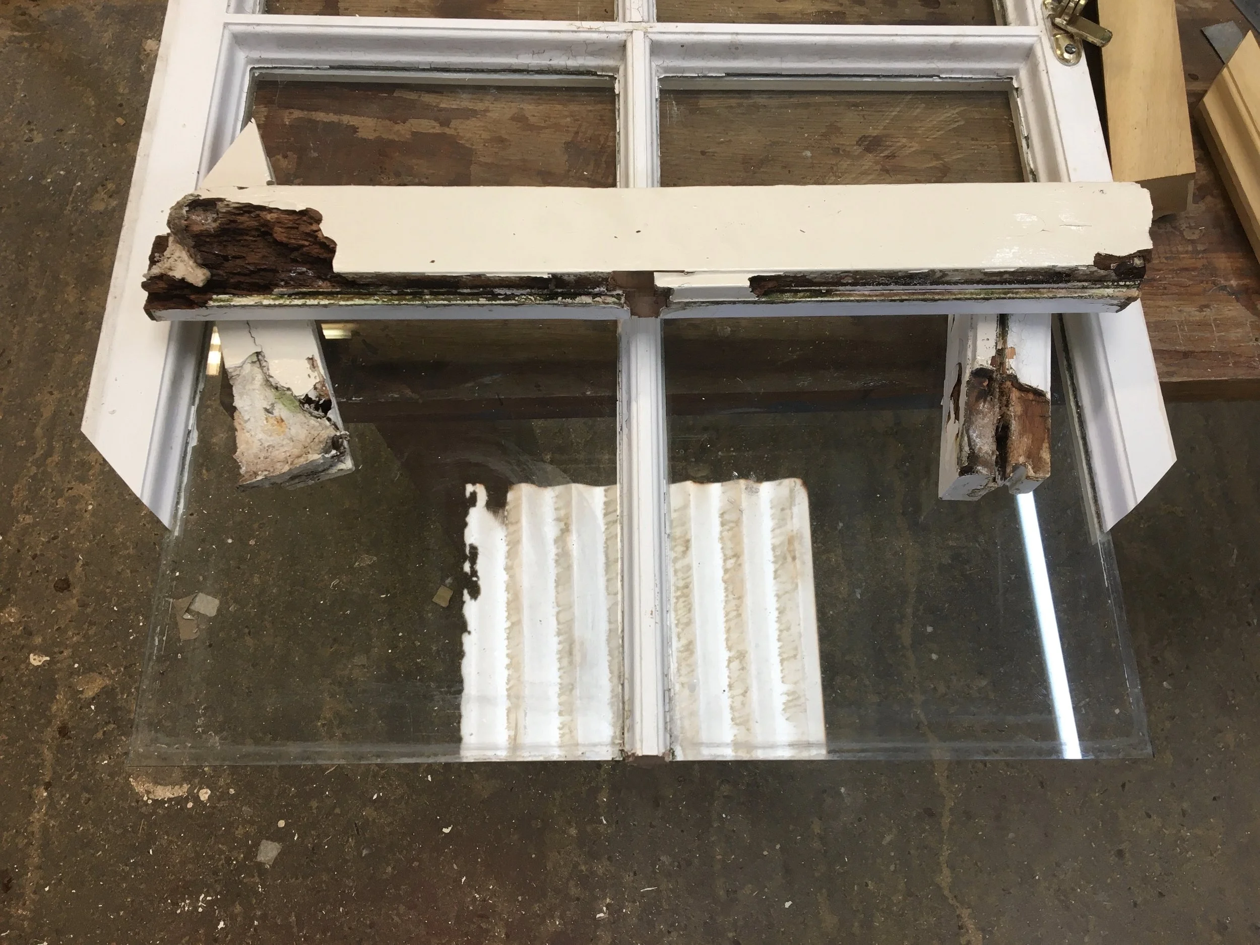 I see all too often, work made in lesser quality timber with insufficient original paintwork, poorly fitted glass and glazing bars fitted on the outside. These failings result in water ingress and rapid deterioration. These patio doors had all failed in the usual places, bottom rails and corners.