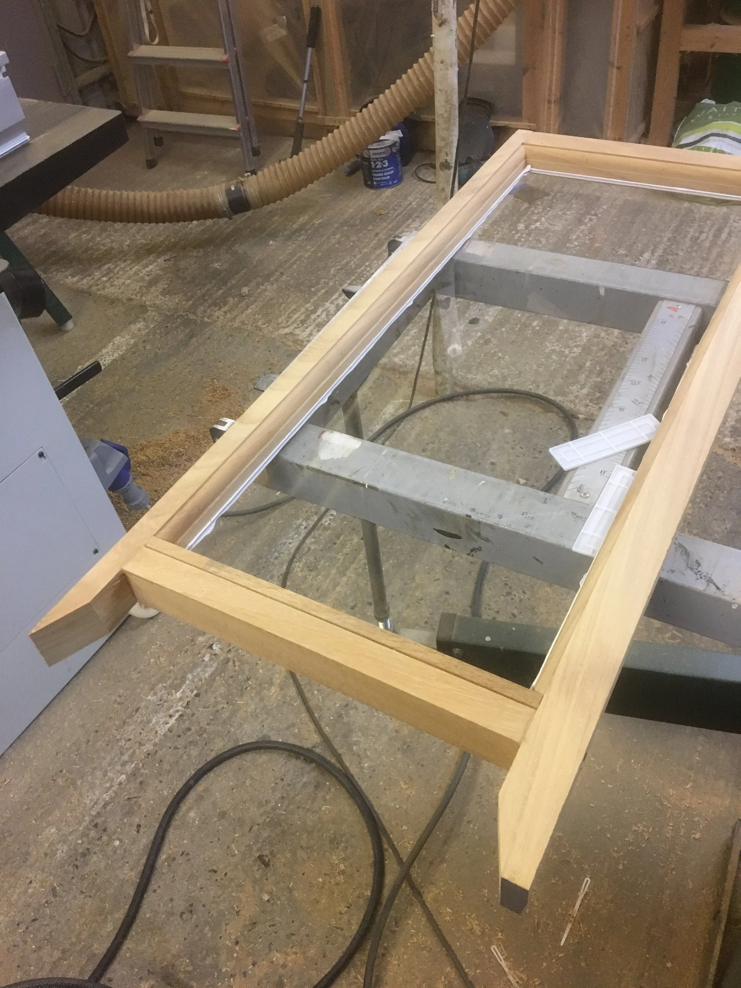 I was asked to build a solid oak framed windowsill, designed to allow someone to stand on the shelf to clean the window above and also to partially dismantle for access / inspection of the wall behind.
